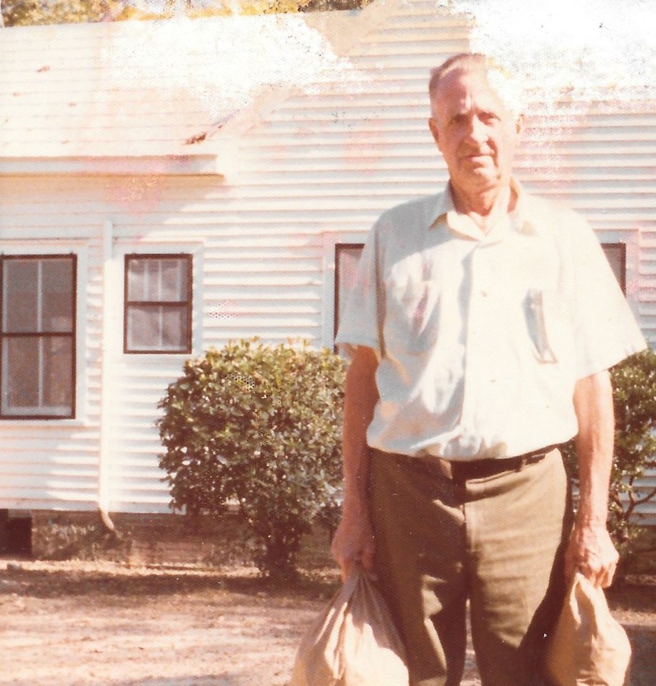 The last time I saw Cousin Eugene was in October of 1974, three months after Aunt Mary died. He was standing on those back steps looking much the way he’d always looked. He let me snap a photo. The family had come together there in December 1973 for Christmas dinner, but I’d moved to Atlanta in January and was in Western New York State when news came of her death a few days into July. When I arrived back home that October, Daddy said her property was on the market, so I rode out to Screven County with my camera, and stopped in at the farm house on my way to the pond.
