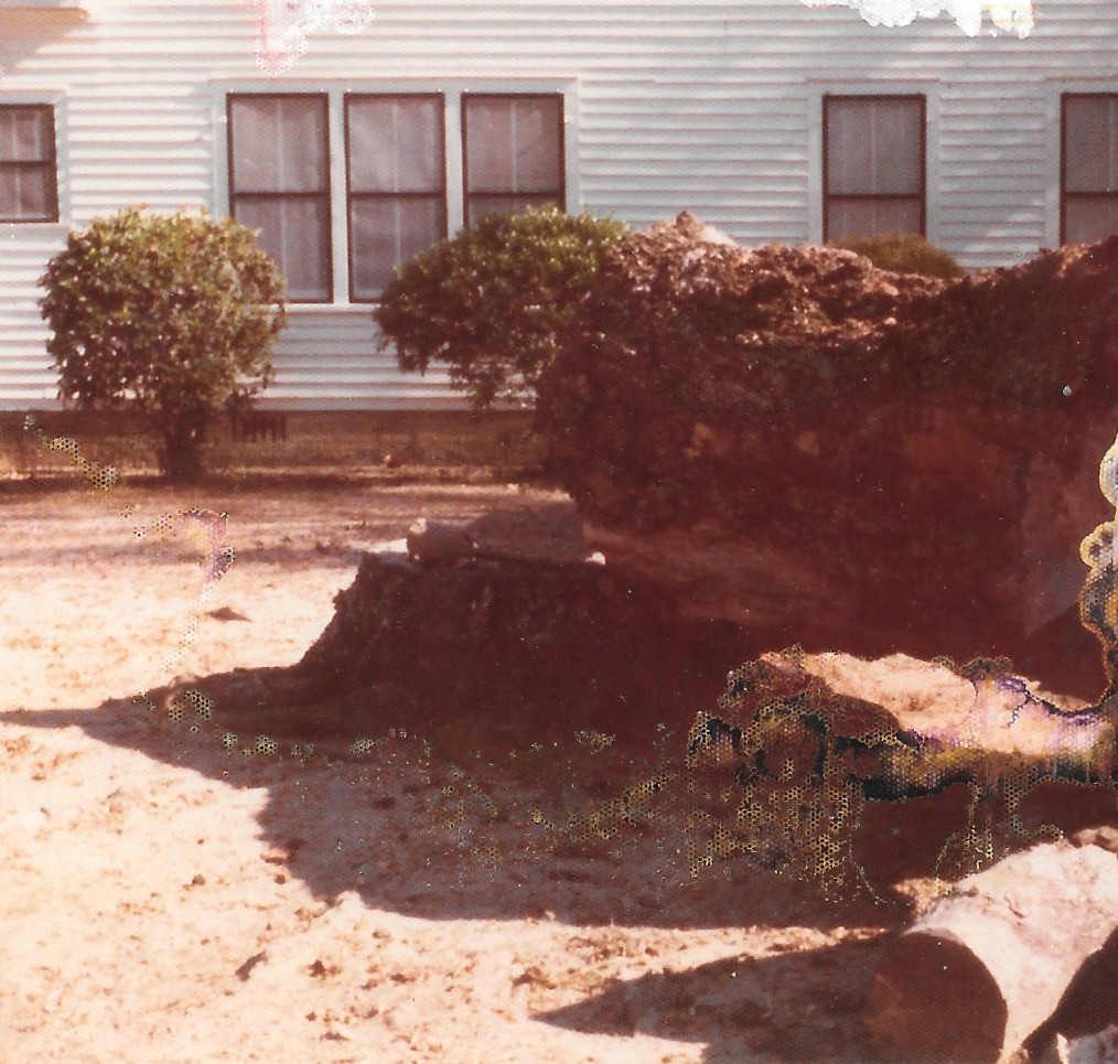 Nine months later, the old homestead was quiet. Though both he and Eugene were there, in the stillness of fallen oak leaves, an eerie solemnity had settled over the place—as if it were frozen in time, but about to change forever. The house, the barn, the chicken yard, and the scuppernong vines all looked the same. The fallen pecan tree I used to climb still stretched to the smoke house. The only thing missing was the huge live oak that had shaded the west side of the house. Granddaddy said it had recently been struck by lightning and had to be taken down. He’d been picking up pecans in the orchard next door, but he showed me the stump, posed for a photo, and offered to ride over to the pond with me—”like old times,” he said. It was plain that the end of an era had come.